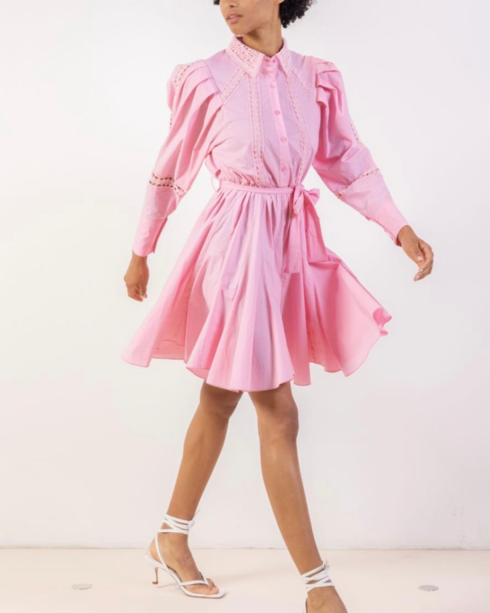 100% cotton short dress with lace.