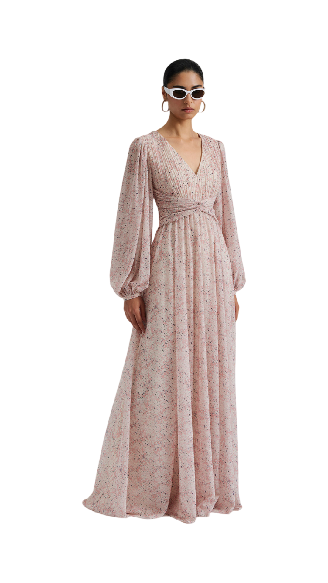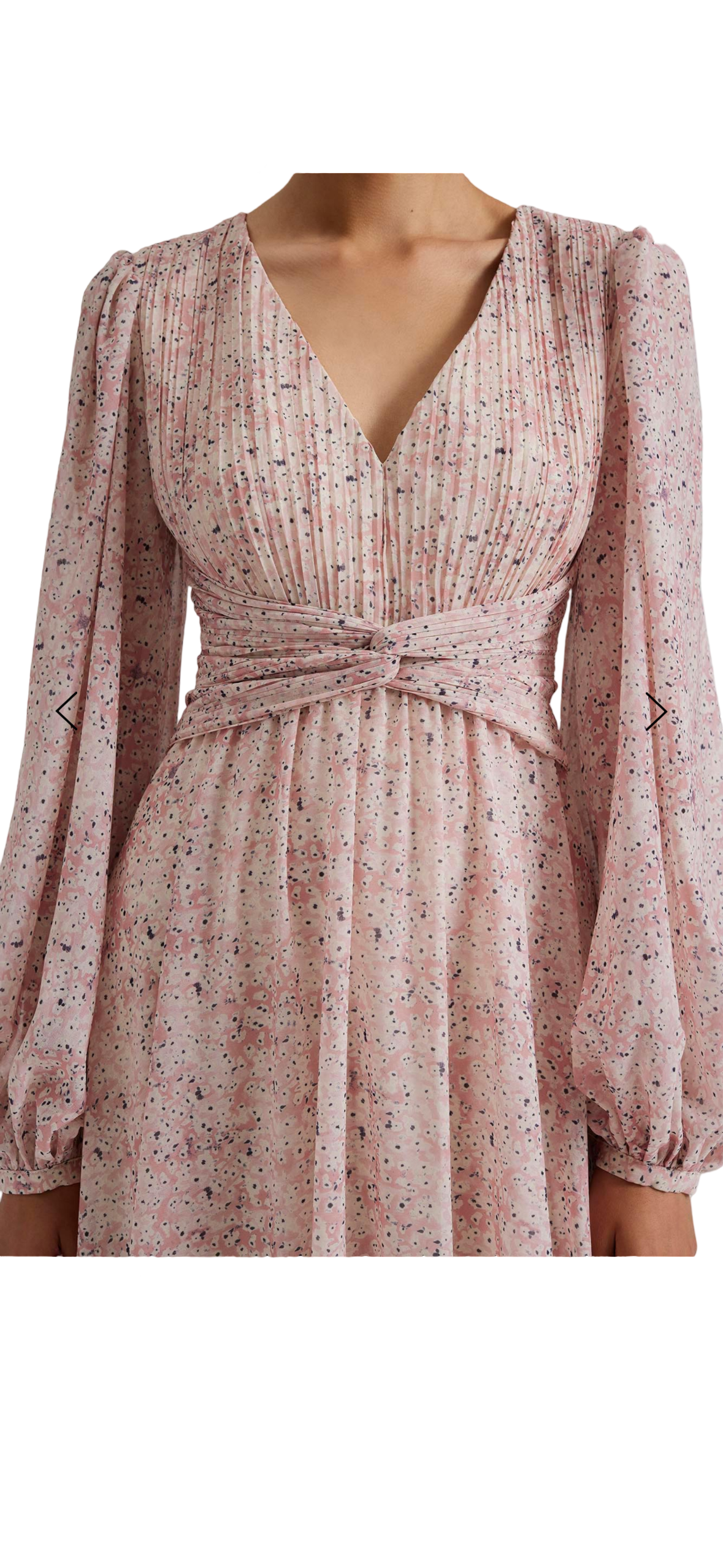Beautiful and super well fitted gown. Shell 100% polyester and lining 100% rayon.